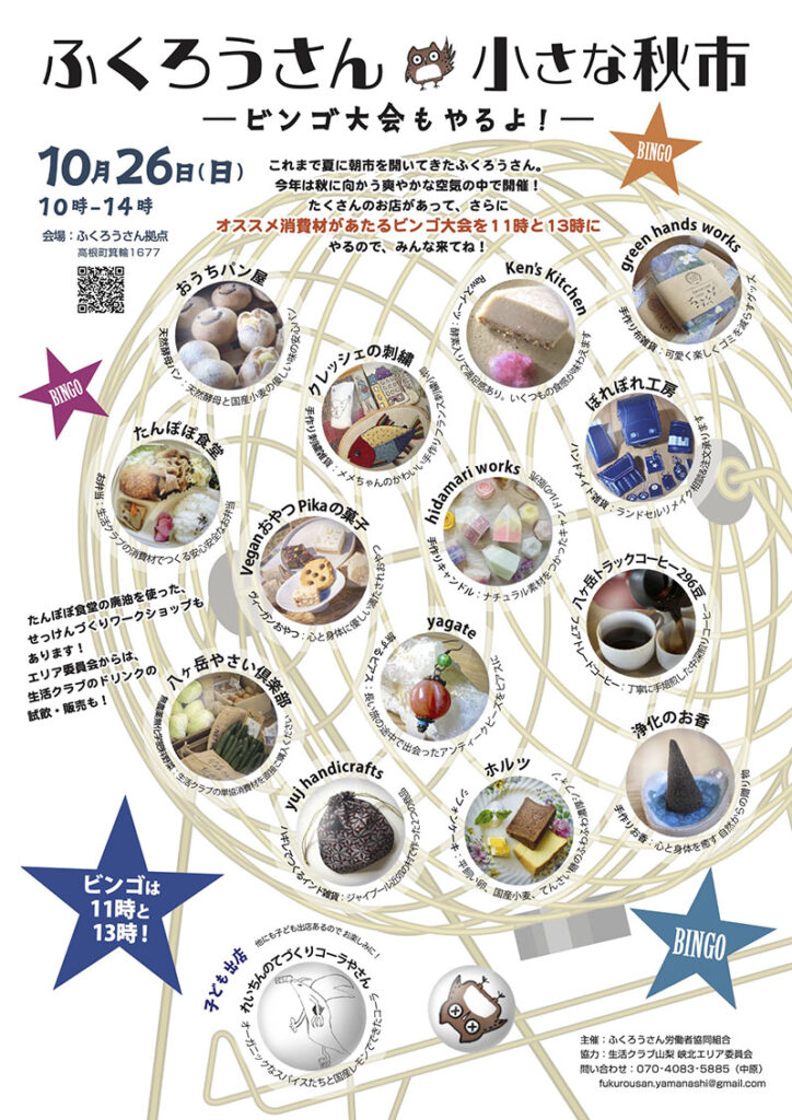 これまで夏に朝市を開いてきたふくろうさん。今年は秋に向かう爽やかな空気の中で開催!